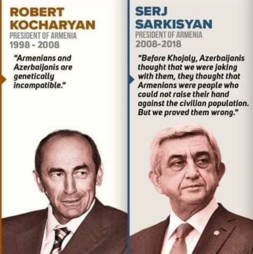 Despite the long-term participation of the Armenian side in the peace negotiations, the country continued to maintain a rhetoric of hatred and speak out about the complete incompatibility of the two conflicting nations and the impossibility of peaceful coexistence. The second president of Armenia, Robert Kocharyan, in an infamous speech at the Diplomatic Academy of the Russian Foreign Ministry in Moscow, spoke of “the impossibility of Armenians living in Azerbaijan in general… [and] some kind of ethnic incompatibility,” saying it was unpleasant, “but… a fact.”