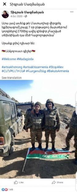 Journalist and activist Tigran Mazmanyan: “Let’s say you captured Matagis (in your dreams and imagination), but the loss of equipment, which is numbered at more than 2,700 soldiers in 7 days of fighting, is a great success? Total sheep. Night without loss.”