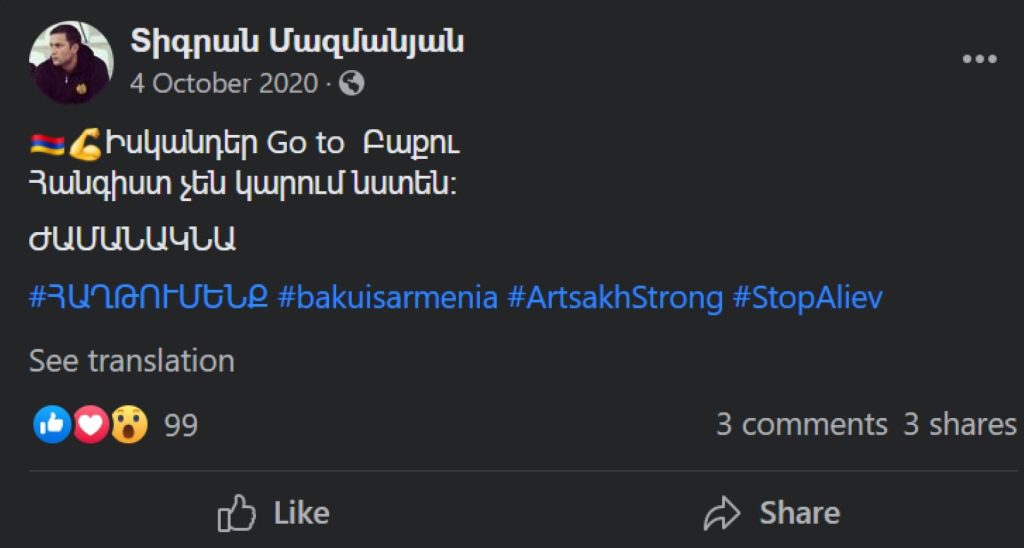 “Iskander go reach Baku. They are not sitting still. The time has come.”