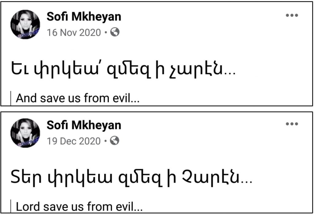 Armenian singer Sophie Mkheyan: “Lord, save us from the devil.” By the devil, Mkheyan means Azerbaijan and Azerbaijanis.