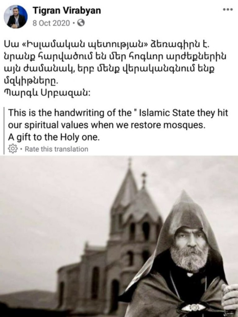 Another popular photo on Armenian social networks, trying to link the Second Karabakh War to religion.