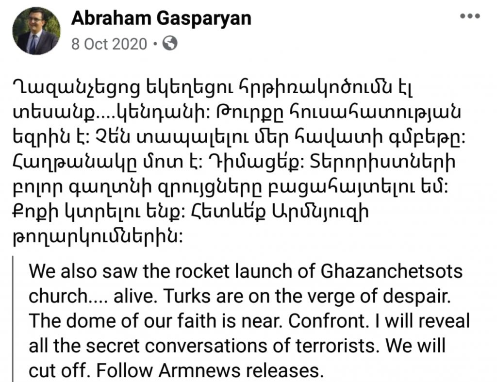 Abraham Gasparyan: “I will reveal all the secret conversations of terrorists.”