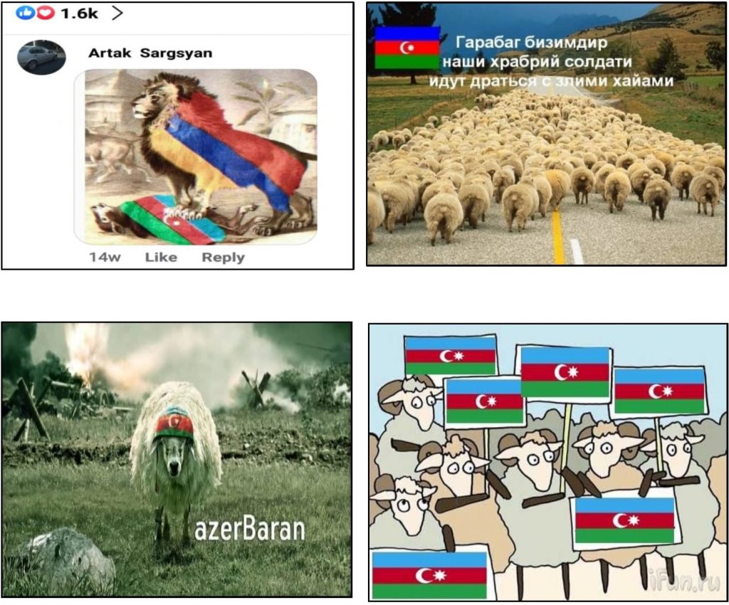 This particular narrative achieved a wide reach on Armenian social networks, with each instance insulting and belittling the Azerbaijani people. The Armenians shared various photographs or self-made images with different themes, but the condescending meaning remained the same.