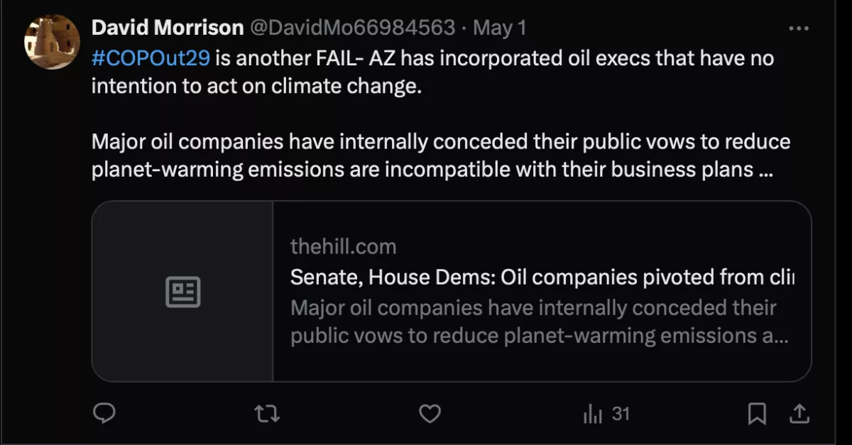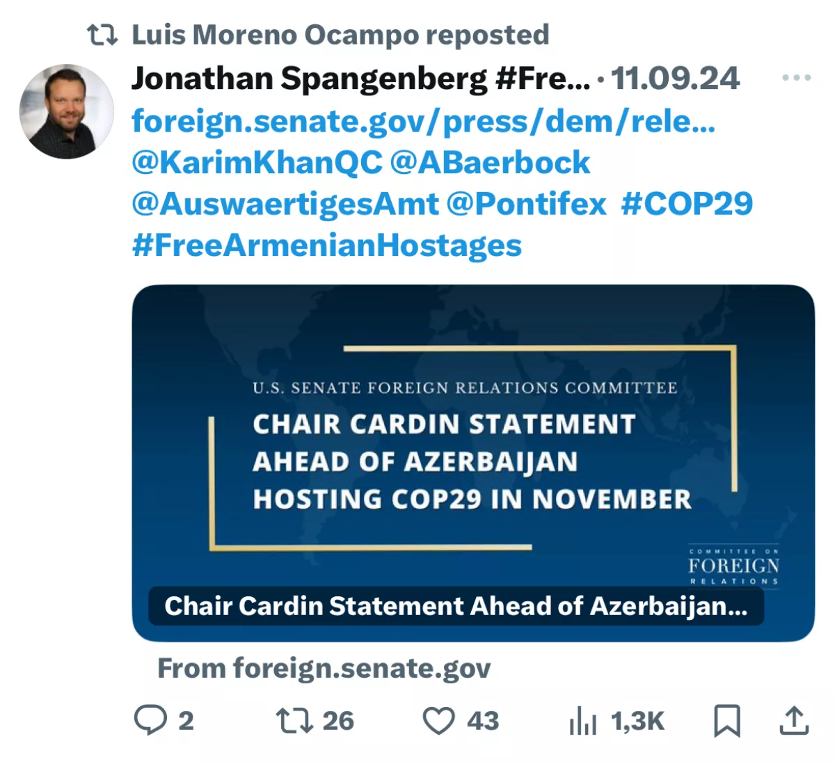 The campaign on this platform began in June of this year, and it is not difficult to notice that it is being conducted by individuals of either Armenian descent or those holding pro-Armenian positions. They systematically call on the global community to boycott COP29 for political reasons. The main objectives of the campaign are to undermine the reputation of the country, prevent the holding of COP29 in Baku, and use the conference as a means of political pressure on Azerbaijan, specifically to secure the release of military criminals of Armenian descent who are under investigation.