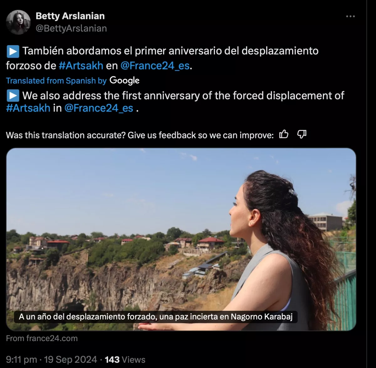 There are also other clear signs of a systematic and networked approach. When you “retweet” any of Ocampo’s posts on X, an automatic message of thanks and detailed instructions on how you can further assist the cause of the global Armenian community is sent to your inbox—complete with steps, directions, and ready-made hashtags and phrases.