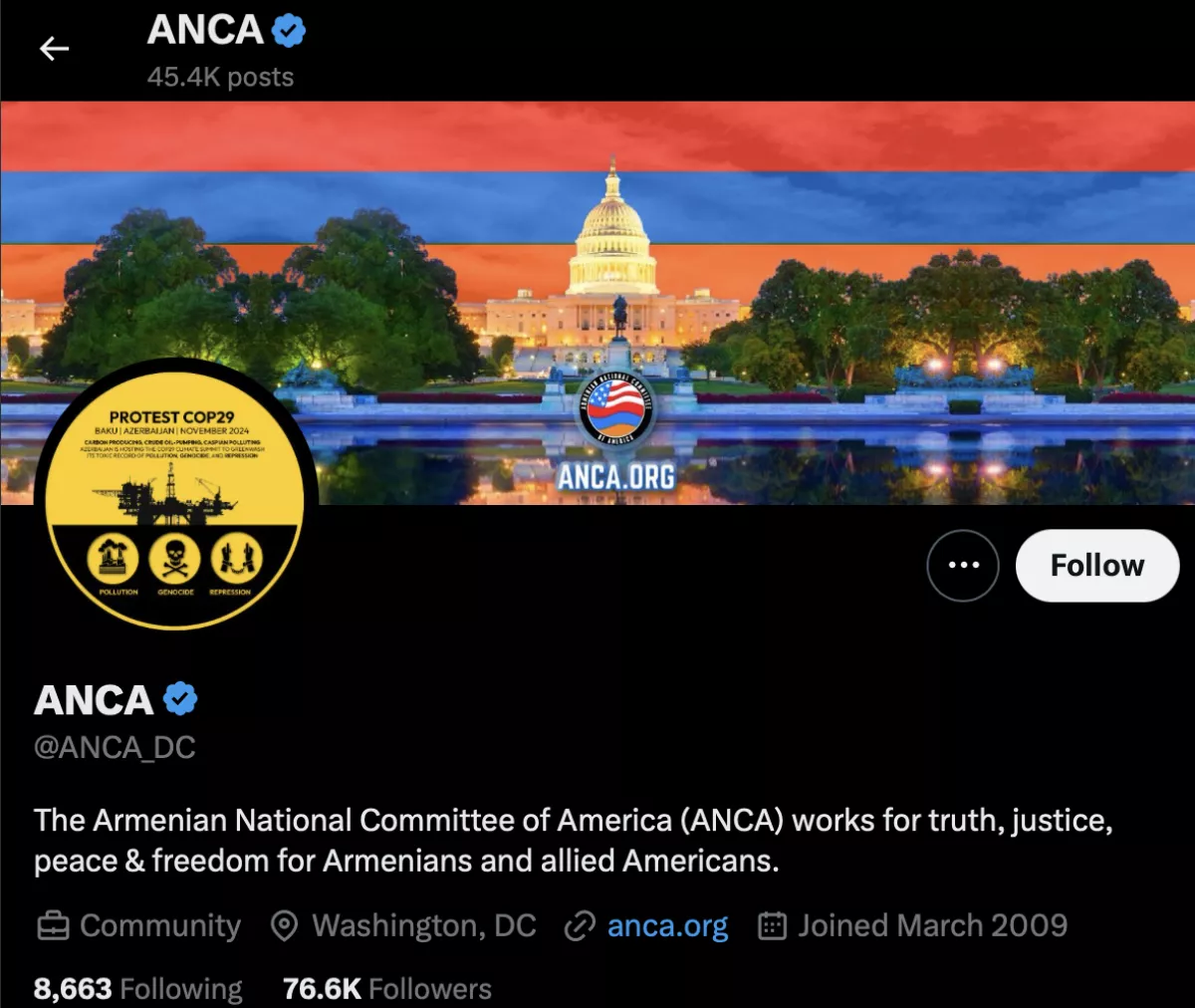 The main organizer of this campaign is the leading organization of the global Armenian community—the Armenian National Committee (ANC) and its American branch (ANCA). It is the latter that finances and conducts these campaigns, directly participating in the preparation of materials and theses and their distribution among involved individuals. However, the ANCA uses not only its direct communication tools for this purpose. In the social media segment, where they are extremely active, several individuals position themselves as “heralds of freedom and justice,” but in reality, they act based on the material benefits promised to them by the aforementioned organizations.