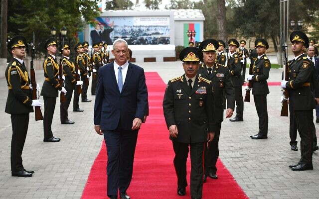 Last month, then-defense minister Benny Gantz held an official visit to Azerbaijan, where he met with his Azeri counterpart, Zakir Hasanov, and the country’s President Ilham Aliyev.