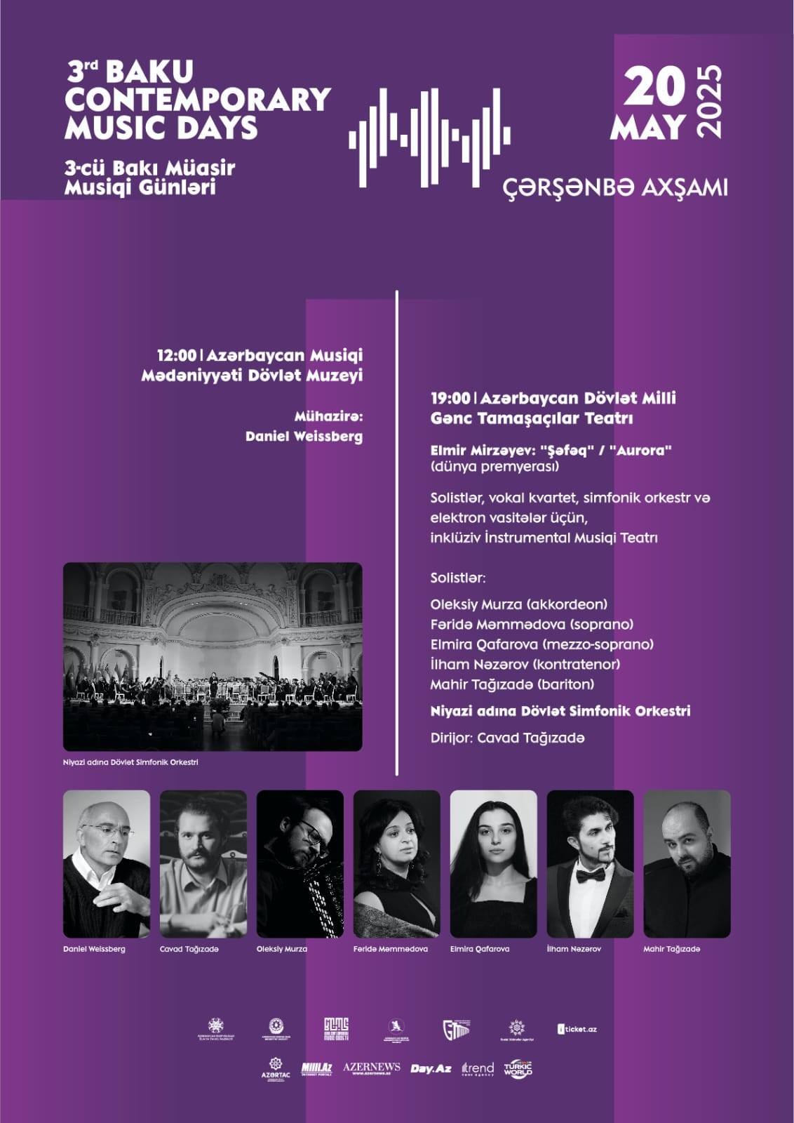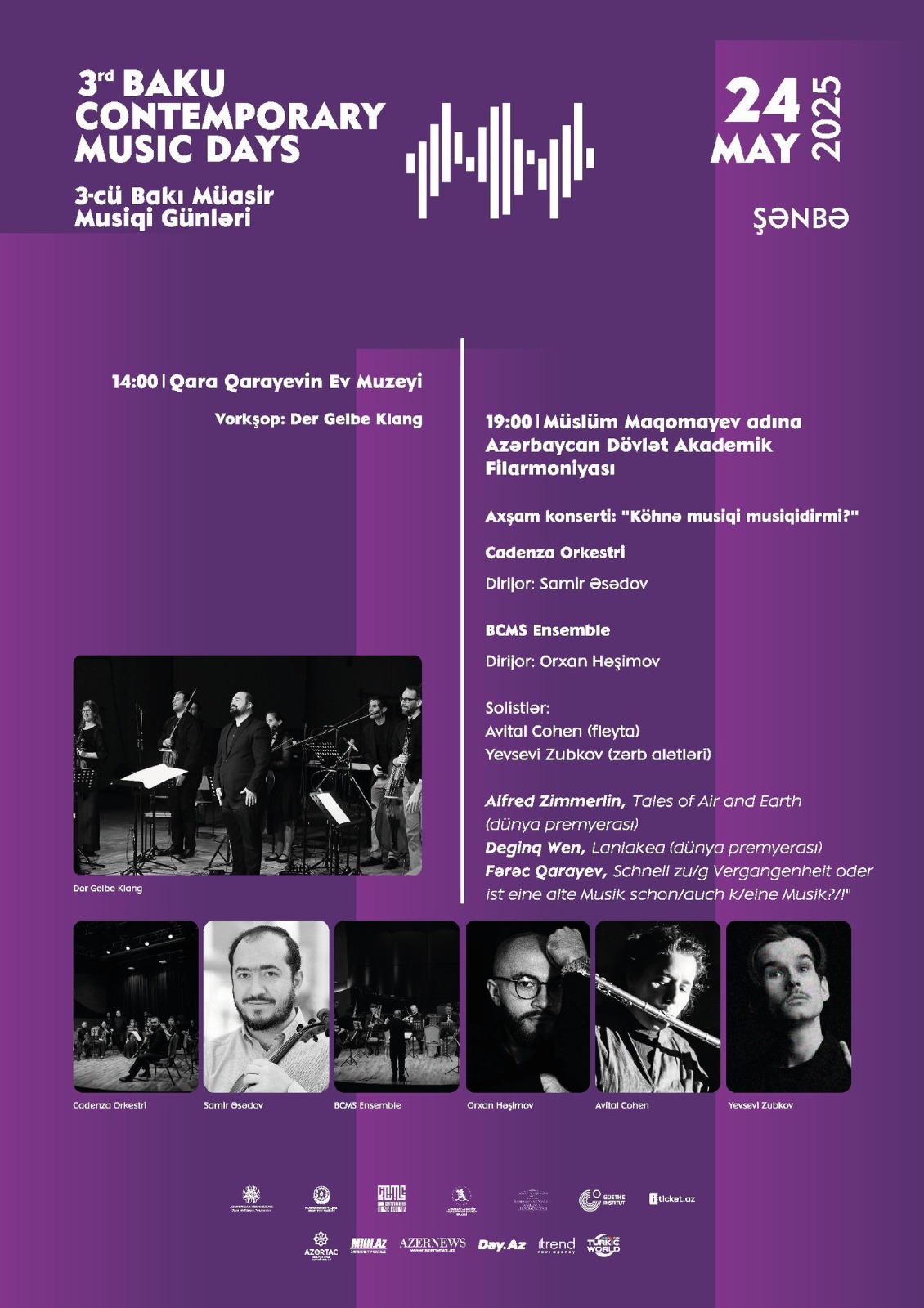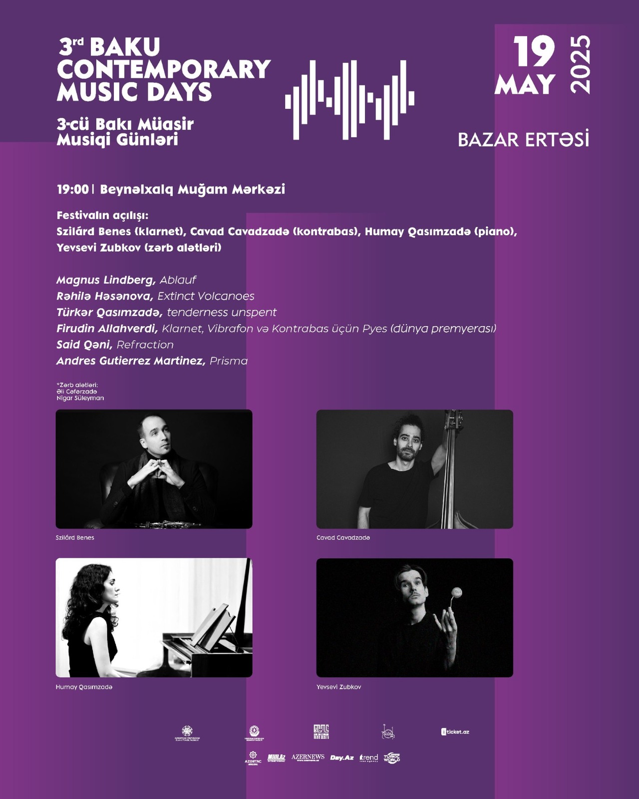 With the support of the Ministry of Science and Education of the Republic of Azerbaijan and the Ministry of Culture of the Republic of Azerbaijan, the 3rd edition of the “Baku Contemporary Music Days” Festival will be held from May 19 to 25, 2025, organized by the Baku Contemporary Music Society.