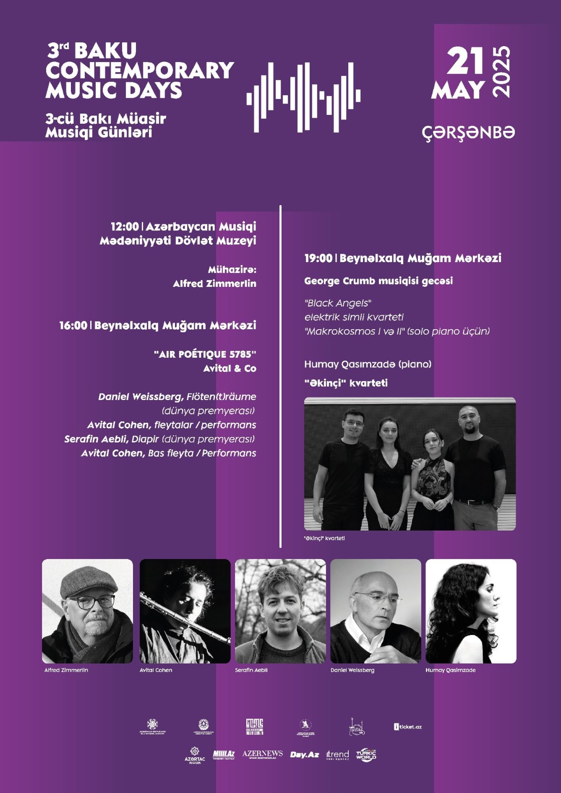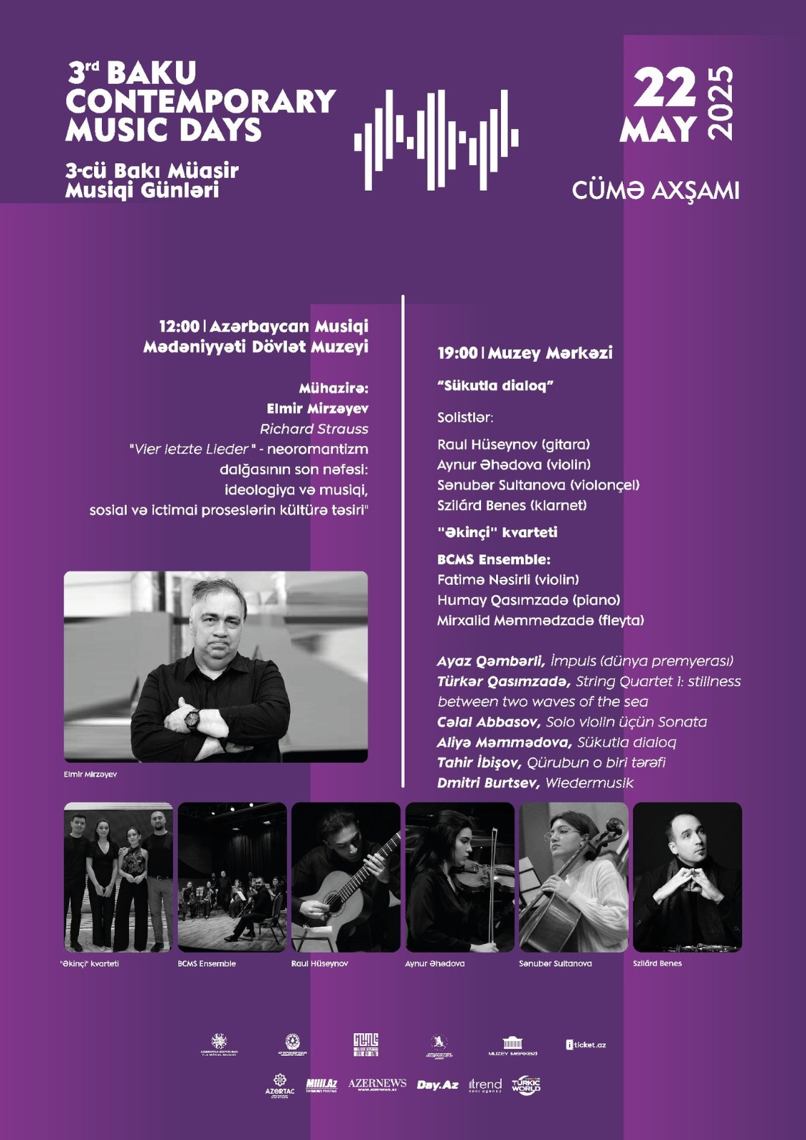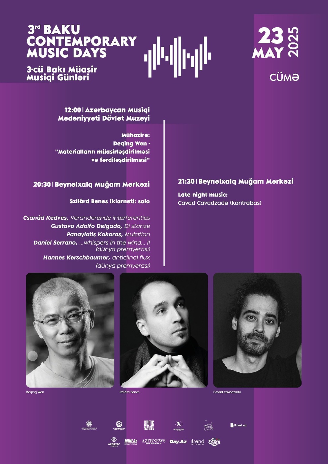 With the support of the Ministry of Science and Education of the Republic of Azerbaijan and the Ministry of Culture of the Republic of Azerbaijan, the 3rd edition of the “Baku Contemporary Music Days” Festival will be held from May 19 to 25, 2025, organized by the Baku Contemporary Music Society.
