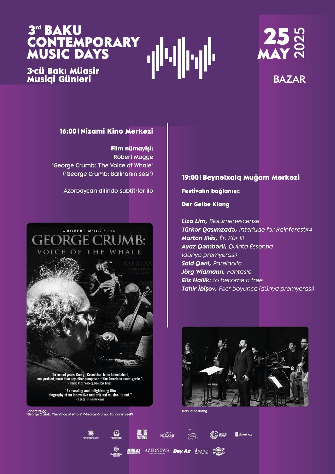 On the final day of the festival, a screening will be held of a documentary about the life of a renowned composer, with Azerbaijani subtitles. This year’s selection is Robert Mugge’s “George Crumb: The Voice of the Whale”.