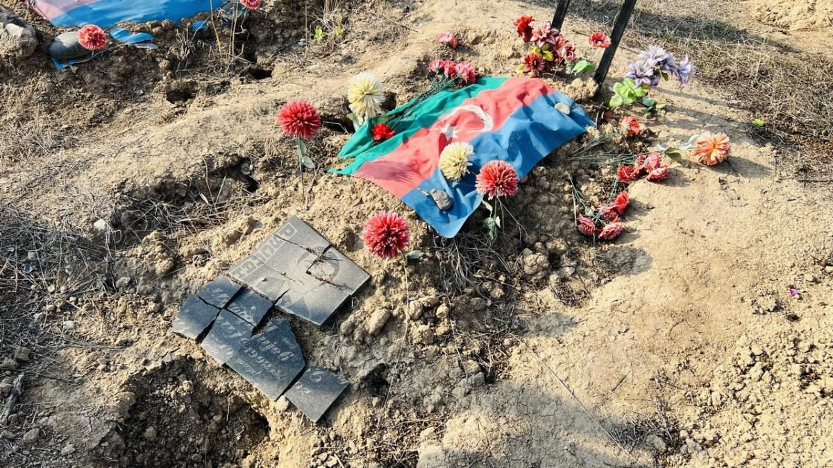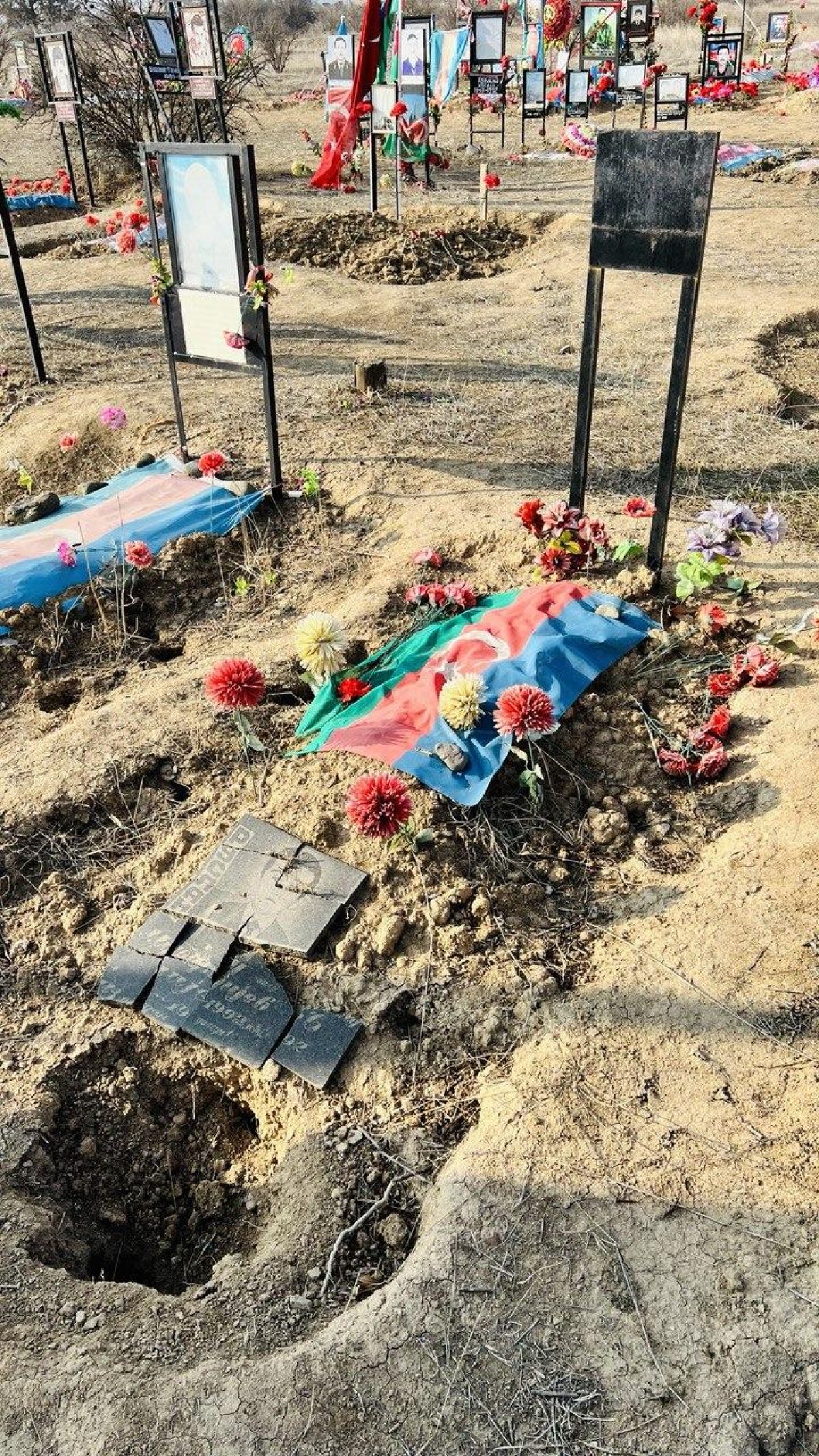 Looted Azerbaijani cemeteries. The photo shows the clear signs of digging in the graves