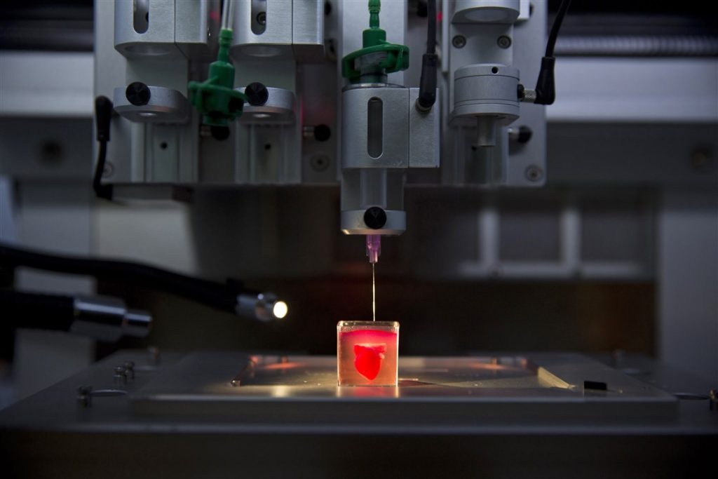 3D cell printing or bioprinting: In the future, this technology will make it possible to synthesize human organs by creating them from living cells using 3D printing. Last year, scientists at Tel Aviv University presented to the public the world’s first small heart “printed” in this way—with all the veins, chambers and nerve fibers. To do this, they first took human fatty tissue cells and reprogrammed them to become stem cells, which they mixed with a special hydrogel and developed the mixture to get heart cells. Then a special 3D printer printed a heart from this “bioink”.