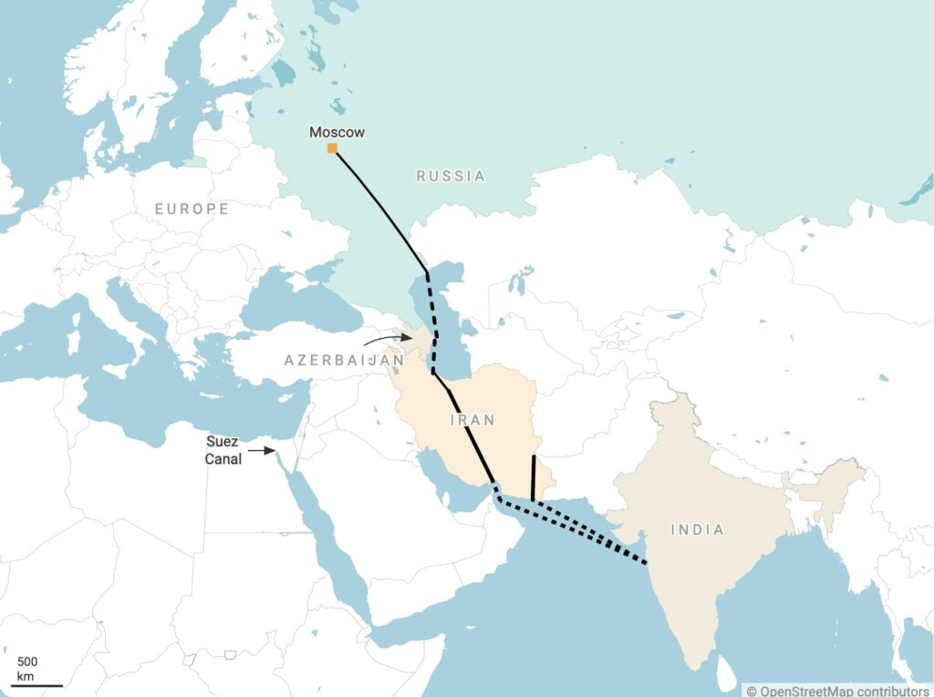 The INSTC connects India to Europe via Iran and Russia, bypassing the Suez Canal. In a potential shift, overland routes may also go through Azerbaijan.
