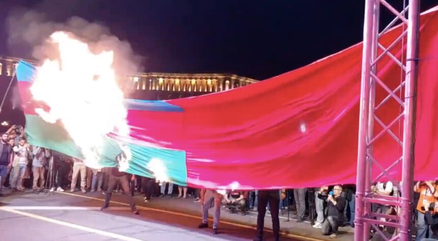 The event began with the burning of Azerbaijani and Turkish flags.