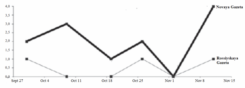 Fig. 1. Distribution of materials in Rossiyskaya Gazeta and Novaya Gazeta across issues