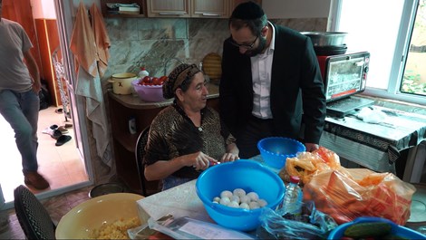 Zoya Avadayev discusses cooking Jewish dishes with Rabbi Tsadok Ashurov Krasnaiya Sloboda, Azerbaijan on July 21, 2018. Cnaan Liphshiz