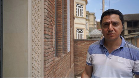 David Mordechayev stands outside the soon-to-be-opened Mountain Jews museum in Krasnaiya Sloboda, Azerbaijan on July 21, 2018. Cnaan Liphshiz
