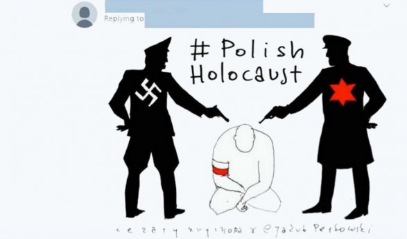 However, the main discourse in Polish society boils down to the complete illegality of Israel’s claims against the Polish government and rules out any possibility of concession, which will be perceived by the public as an act of surrender and collective humiliation. It is no coincidence that the popular Polish weekly Do Rzeczy, consistently hyping up the “Polish Holocaust”, claims that Poles once suffered much from both Germans and Jews, illustrating its texts with pictures like this one: