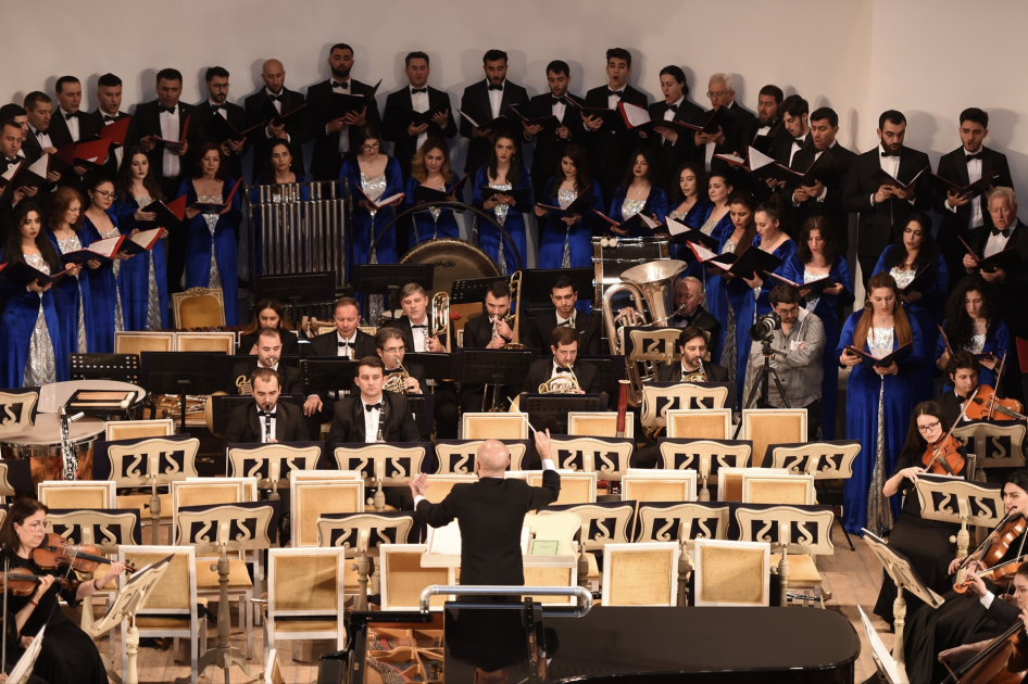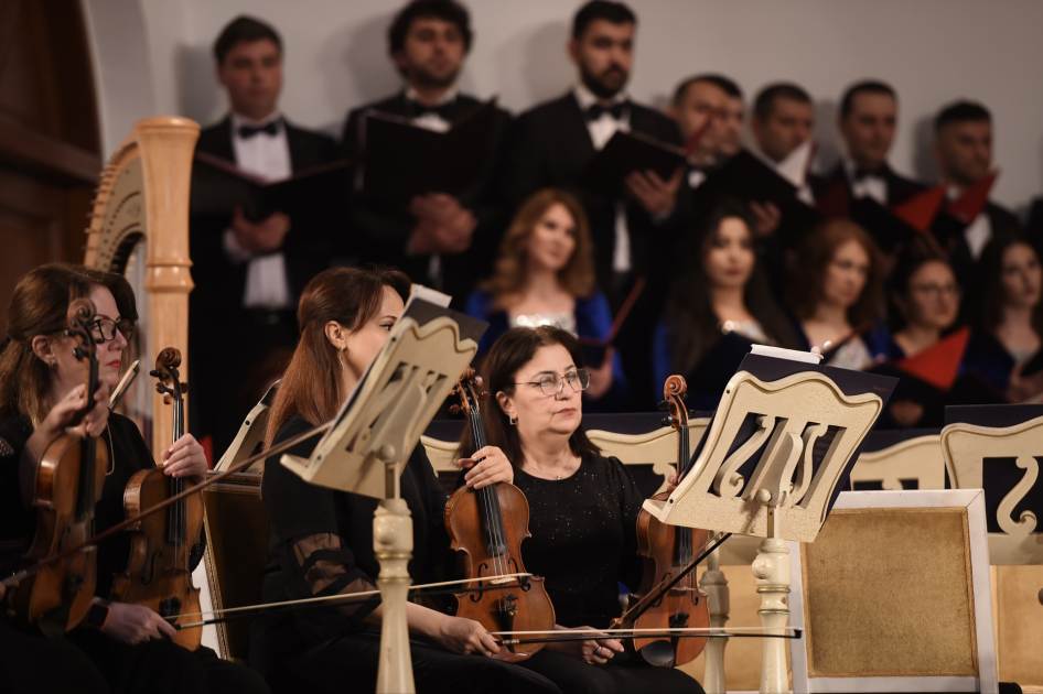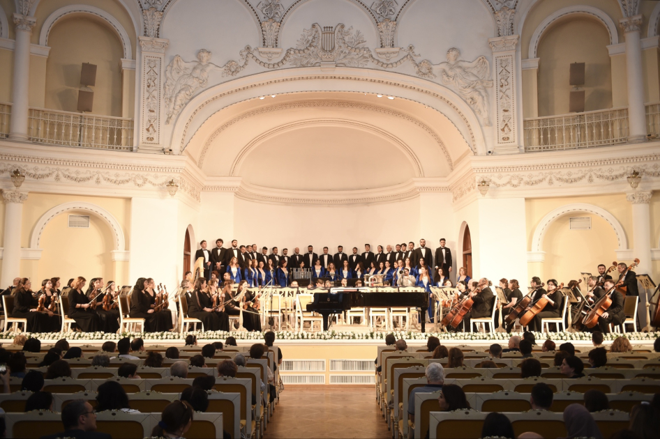 The concert featured performances by the Uzeyir Hajibeyli Azerbaijan State Symphony Orchestra under the baton of conductor Orkhan Hashimov, the Azerbaijan State Choir Chapel led by People’s Artist Gülbadji Imanova, and soloists Farida Mammadova (soprano), Ilham Nazarov (countertenor), and Eldeniz Alekperzade (piano).