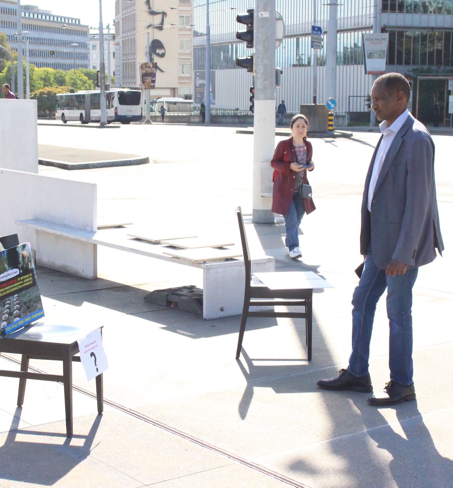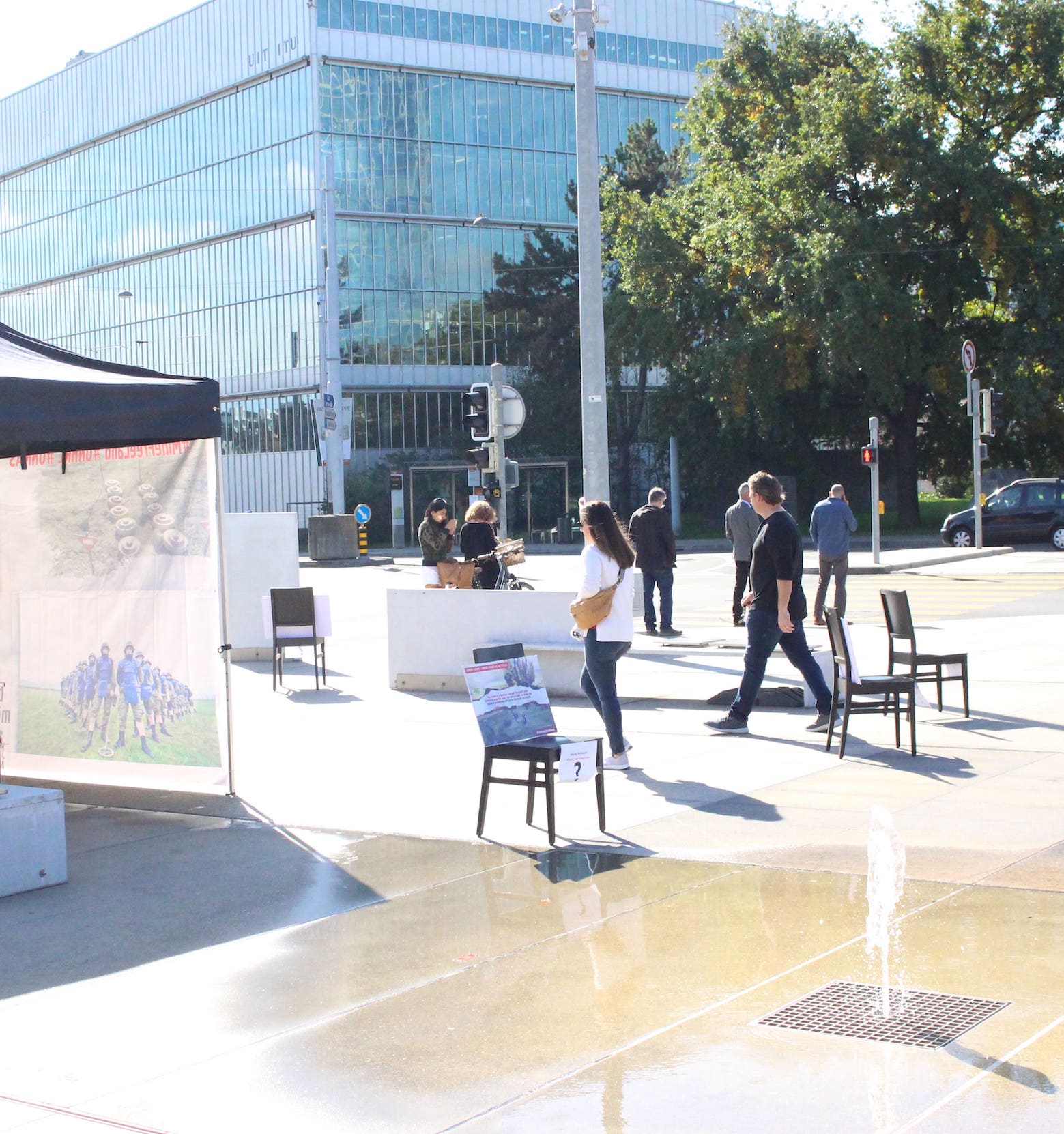 Protest exhibition in front of United Nations Office in Geneva