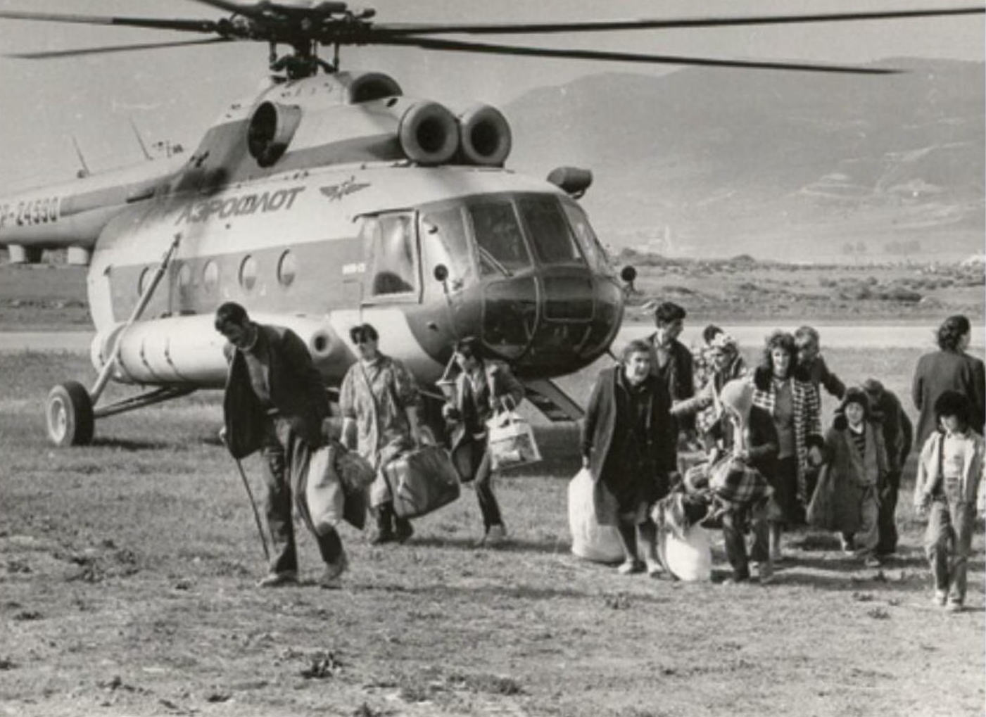 Azerbaijani refugees arrive by helicopter © Archive of AZERTAC