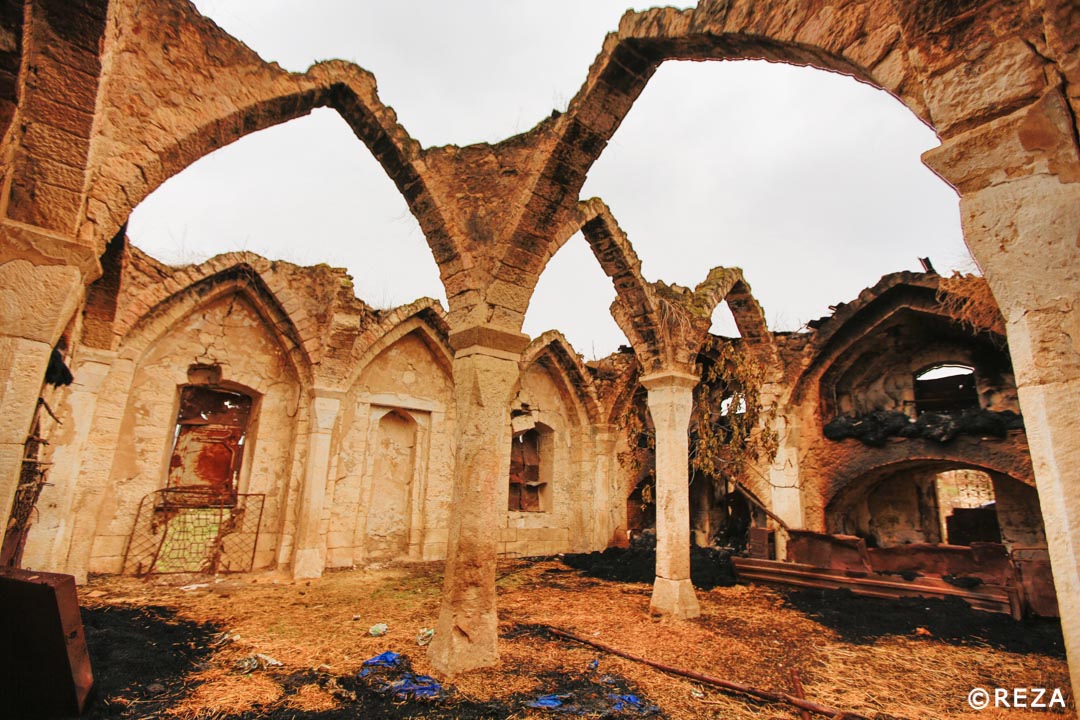 Examples of known damage to significant religious sites include the 19th-century Haji Alakbar Mosque in Fuzuli District, which was destroyed, and the Juma Mosque in Aghdam, which was vandalized with Armenian-language graffiti and whose mehrab (the niche in the wall that indicates the direction of Mecca) was riddled with bullet holes. Cemeteries throughout Agdam were desecrated, looted, and/or destroyed, including the sacred and historic 18th-century tombs of Imarat Garvand Cemetery, the city’s “Martyrs’ Alley”.