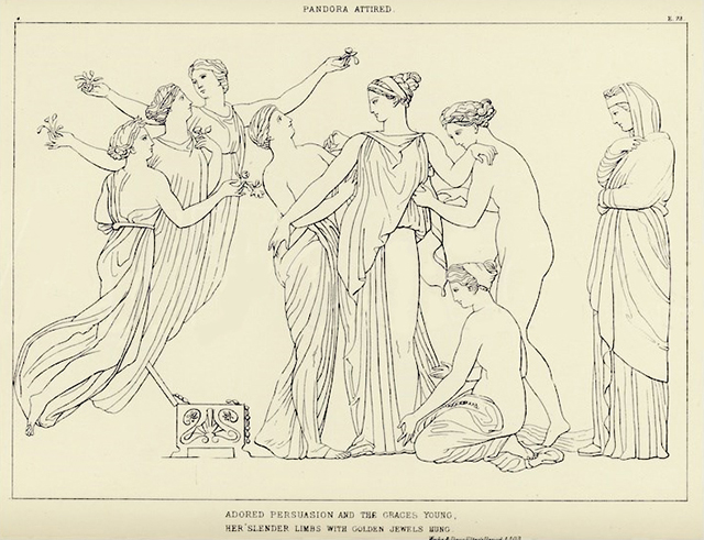 Pandora’s charms, awakening an irresistible and unquenchable lust in men, this dimwitted brood, also in a way echoed Hephaestus’s mother, who knew how to distract the father of gods and men from any exciting business.
